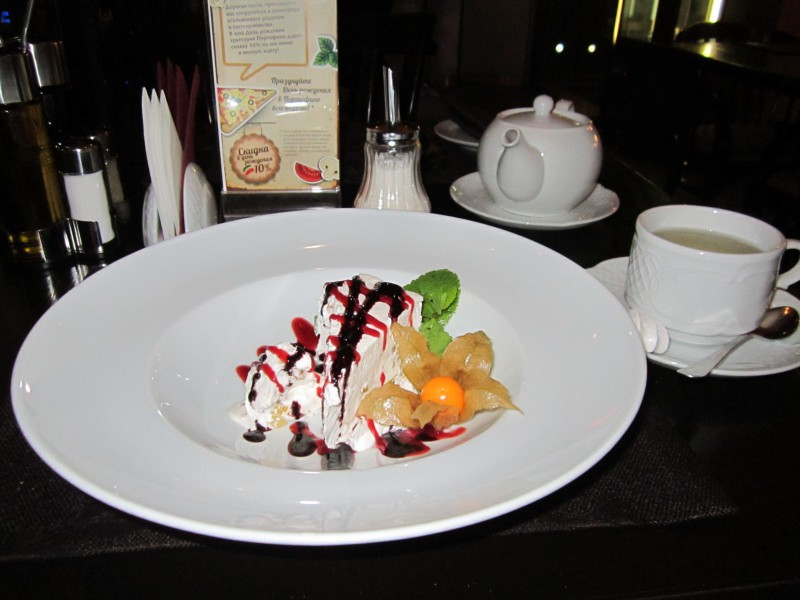 Мой столик обслуживала официант Наталья - очень рекомендую! Исключительно компетентная, контактная и динамичная девушка. По крайней мере, мне во время нахождения в ресторане общаться с ней было исключительно легко и приятно. Естественно, поначалу заказал чудный капучино карамельный и совсем немного метаксы - без метаксы разобраться с этим меню совершенно невозможно, зато с метаксой - всё легко и понятно!