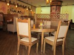 Интерьер безусловно «русский», необычный, стильный и интересный, пропитан теплом и уютом, наполнен деталями и акцентами: «основательная» мебель, тканые салфетки на столах, старинный буфет с самоваром. Фото и афиши начала XX века полностью отражают городской традиционный быт того времени.